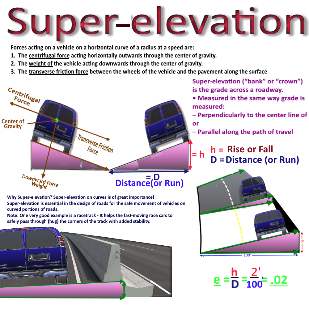 Super-elevation = Se = e = h/D