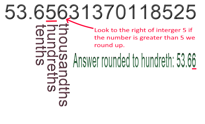 Now we need to round off to the hundredths, so we get 53.66 Mph.
